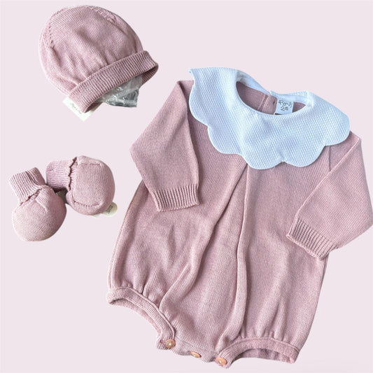 Uscita clinica pappa e latte rosa e panna in filo di cotone adatto da fine maggio