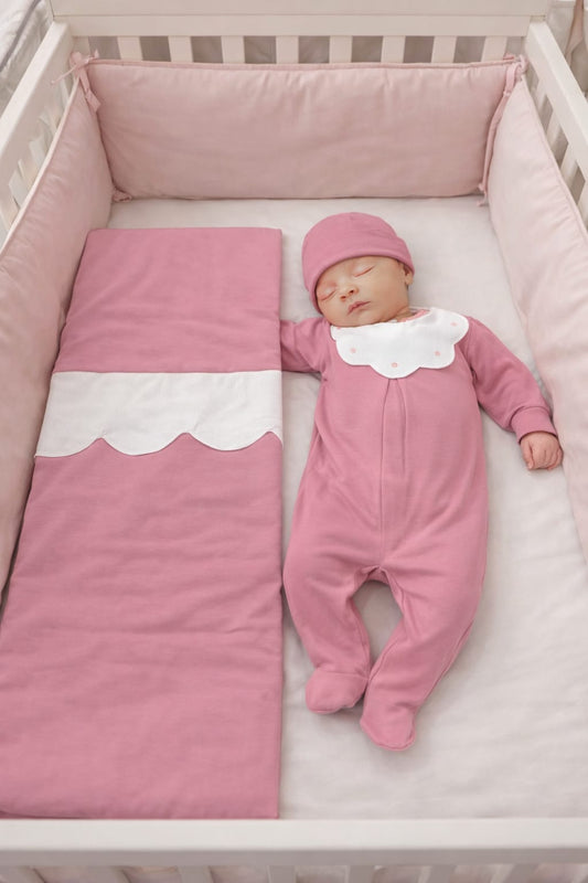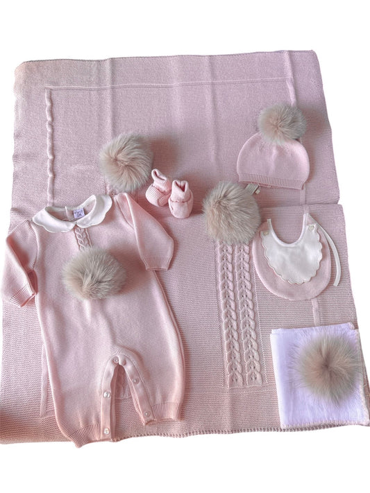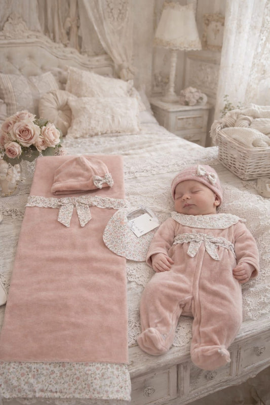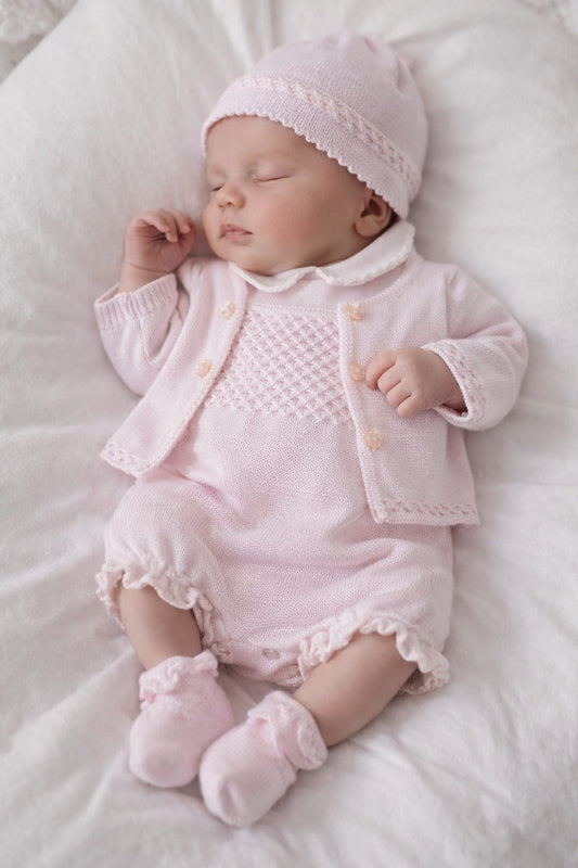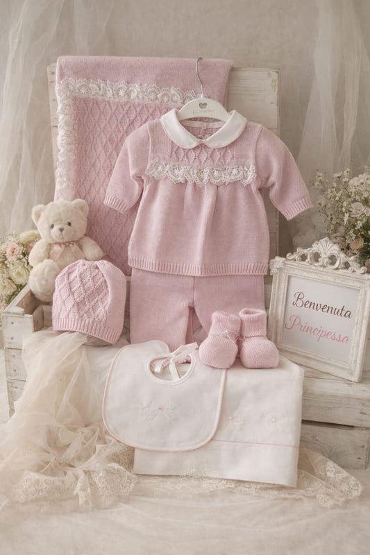 Uscita clinica pappa e latte rosa e panna in filo di cotone adatto da fine maggio