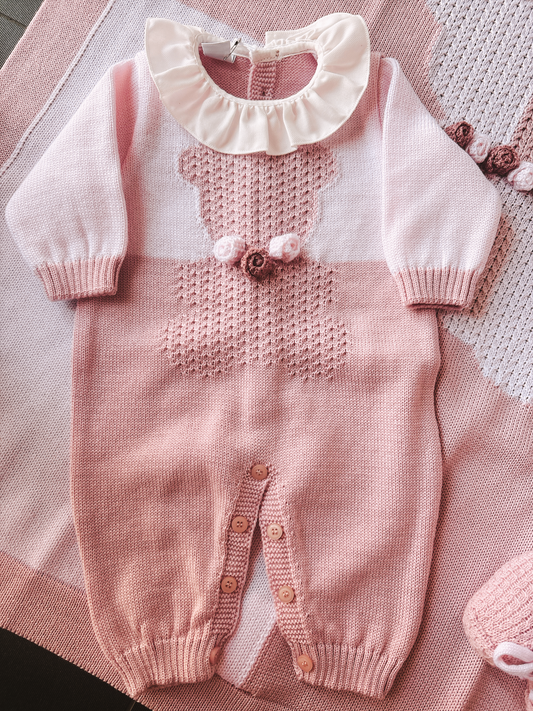Uscita clinica pappa e latte bianca e rosa con traforo