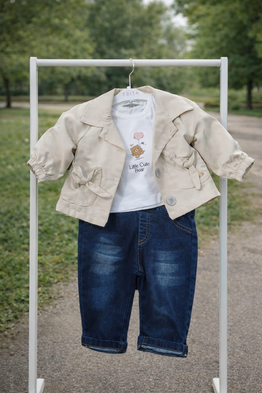 Proprio primavere questo completo composto da jeans leggero magliettina mezza manica trench Ebita pensa a tutto prezzo/ qualità